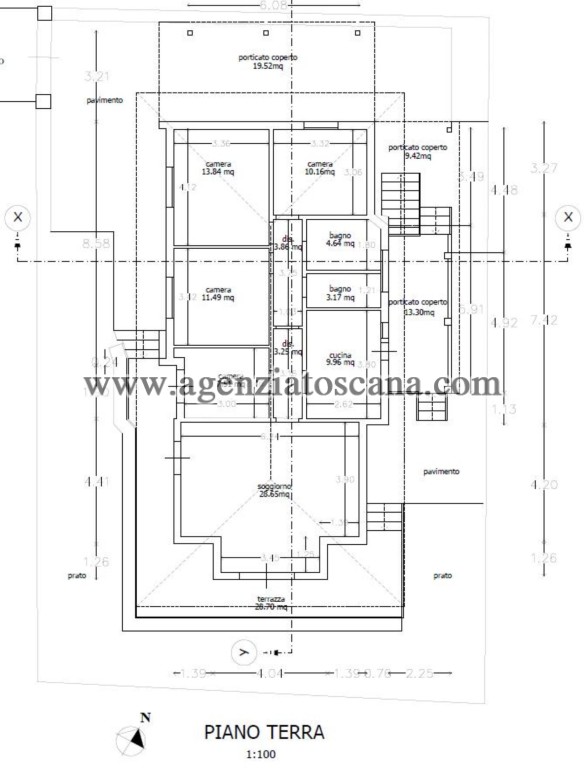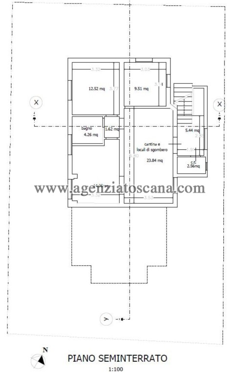 Misure: piano terra circa mq. 100 - piano seminterrato mq. 75.