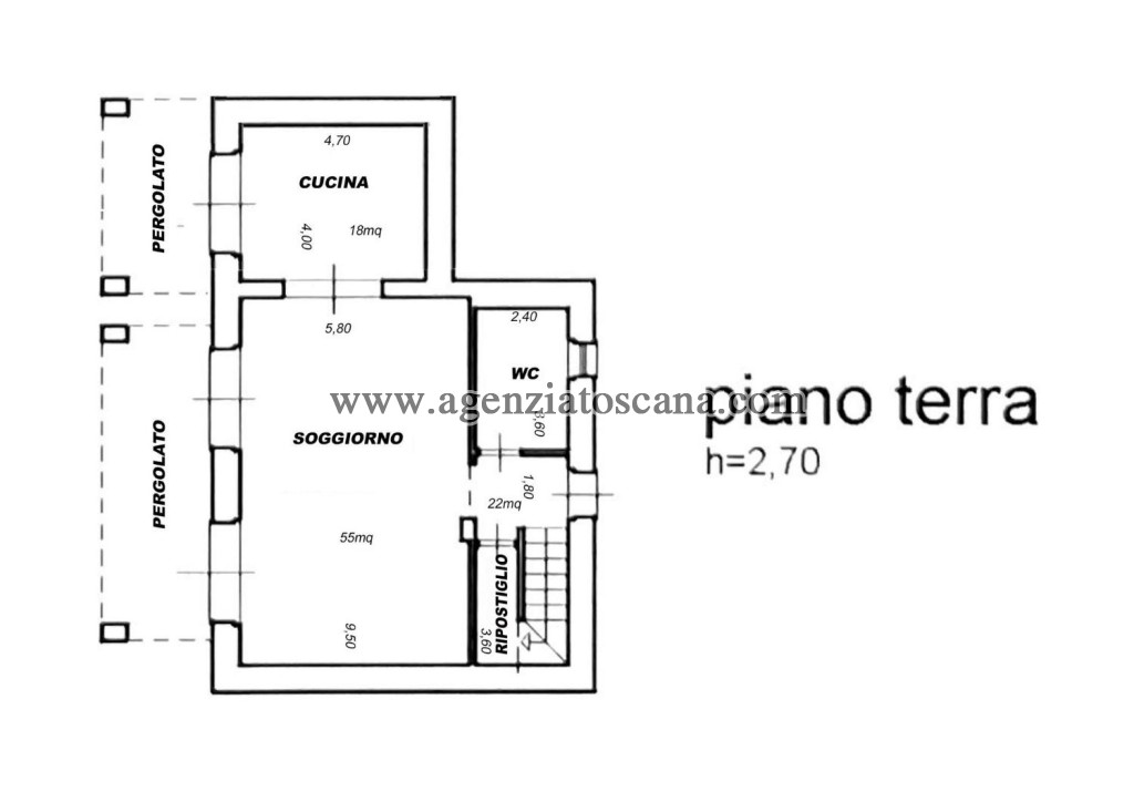 e pronta all'uso. Le misure: Piano terra mq. 73 – Piano primo mq. 55 – Piano Mansarda